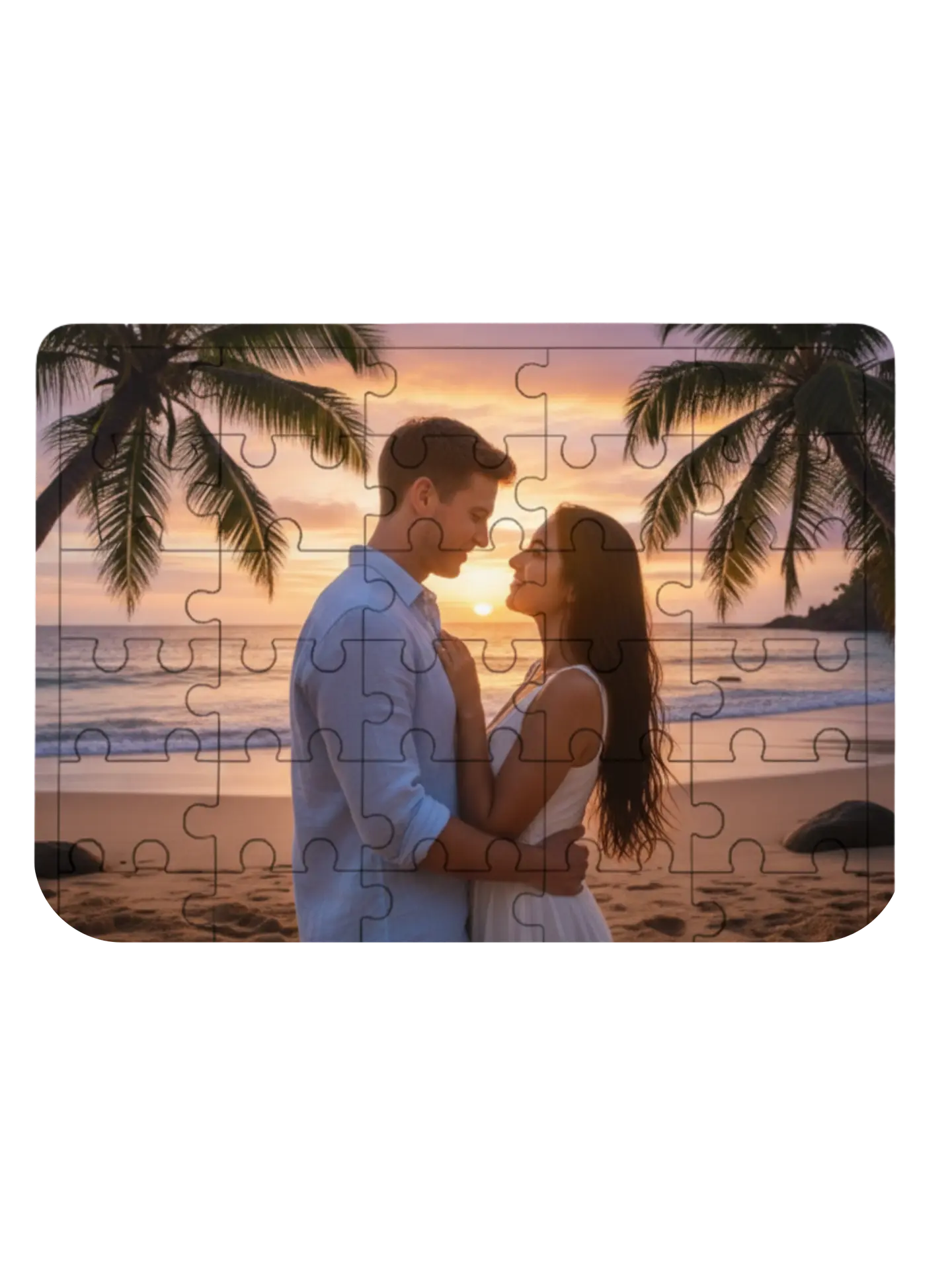 Our personalised photo puzzles are created in partnership with the original manufacturers, allowing us to bring premium quality directly to you. Crafted from refined MDF, each puzzle includes 30 smooth, precision-cut pieces with a glossy surface that is both waterproof and fade-resistant.