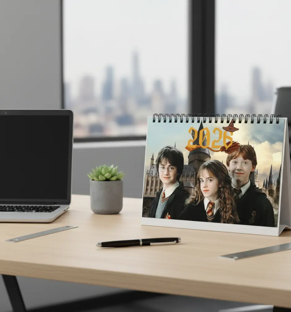 ur desktop calendars are crafted with premium materials and vibrant, fade-proof printing. Each month features your favourite scenes from beloved shows and movies, printed as stunning backgrounds — so you can relive those moments every time you sit at your desk. The sturdy build stands elegantly on any table,